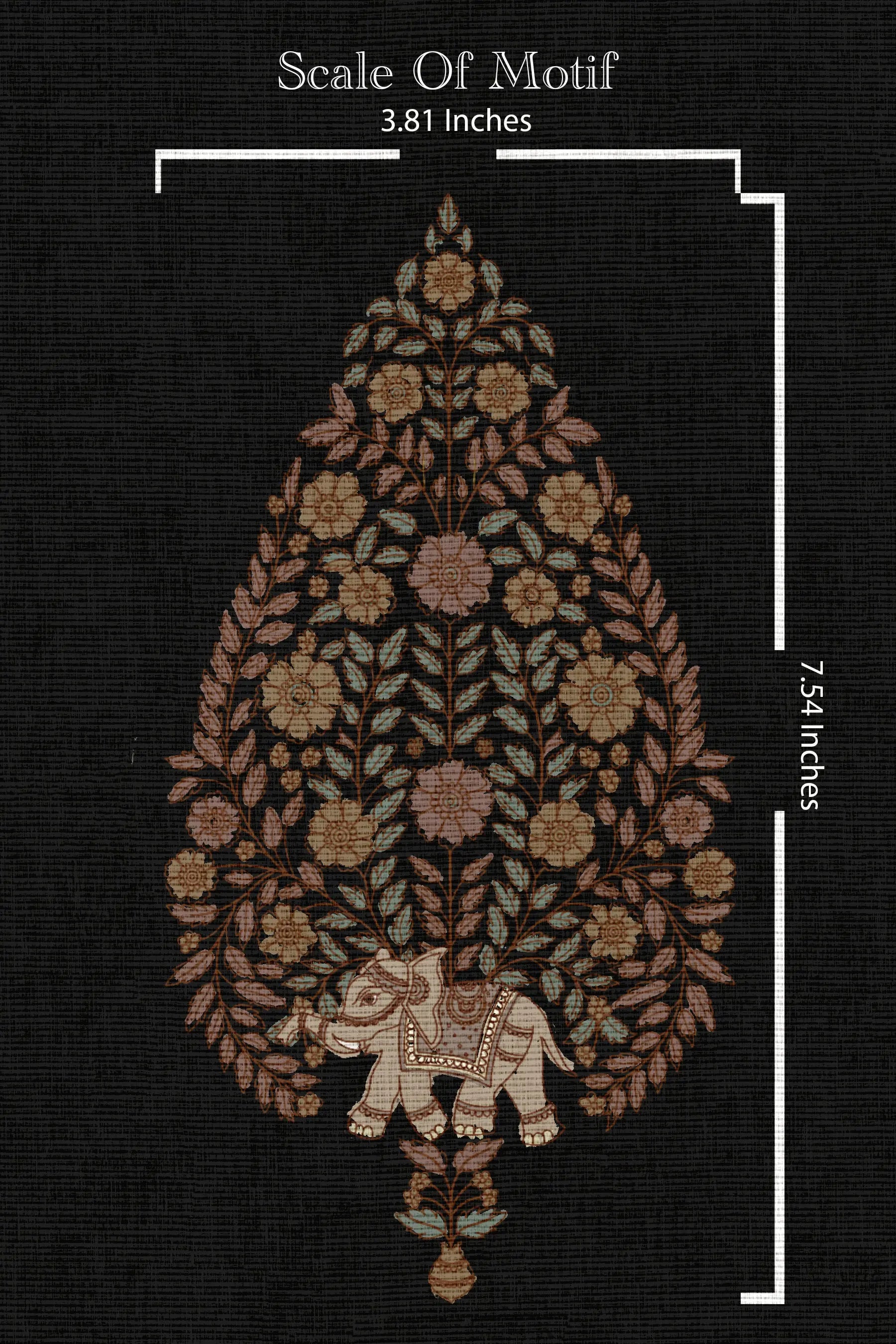 The design is a blend of traditional Indian art and modern sophistication resonates with the traditional design of kalamkari, a tear drop motif with intricate hand-painted details & floral elements resonating The Rayala Elephant Reserve in Andhra. Detailing that depicts the kalam’s essence.